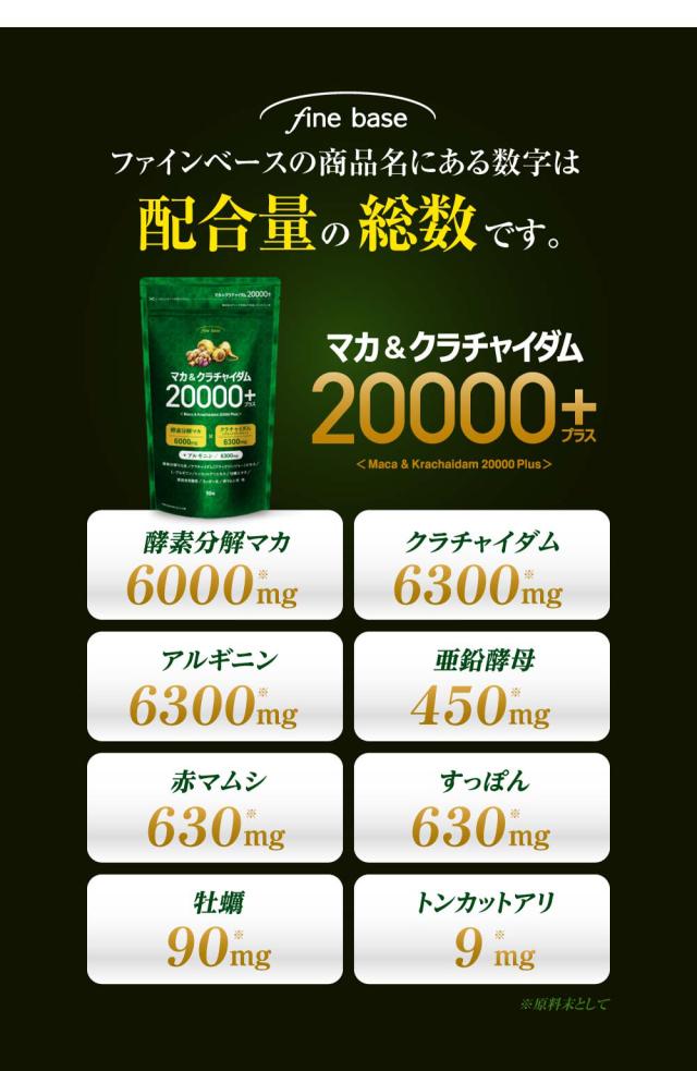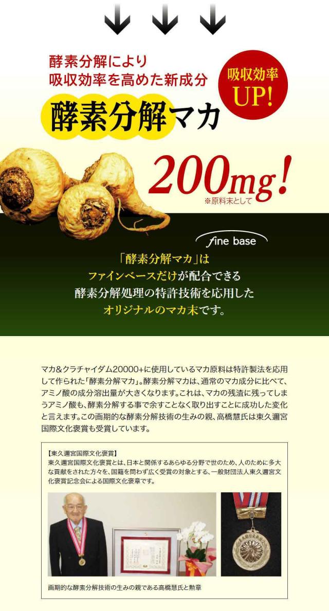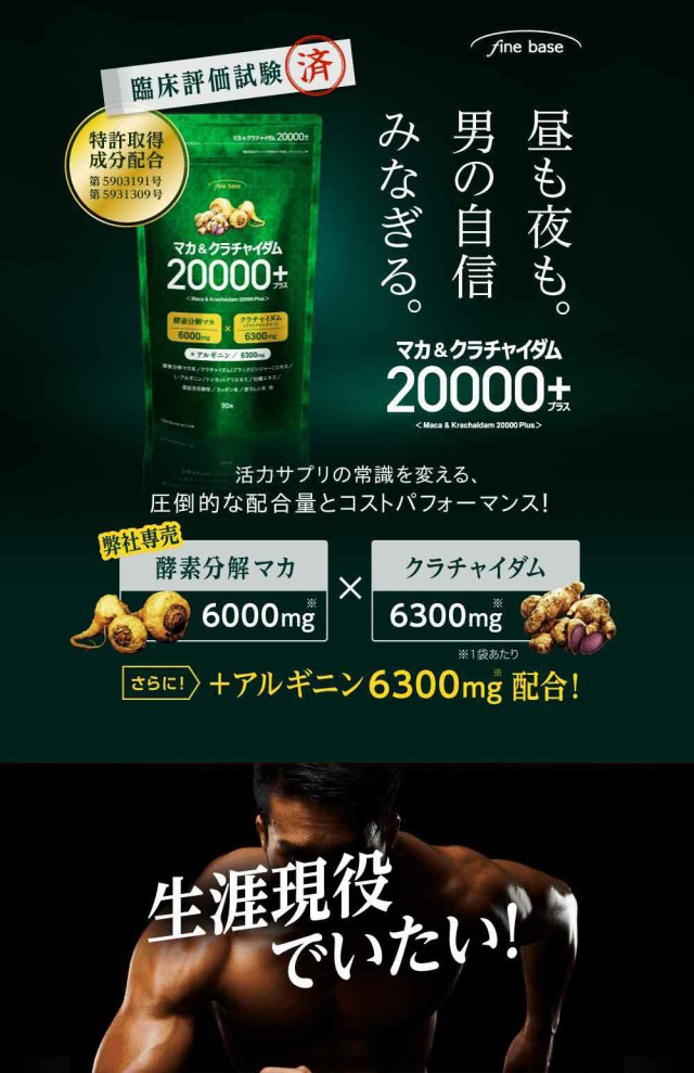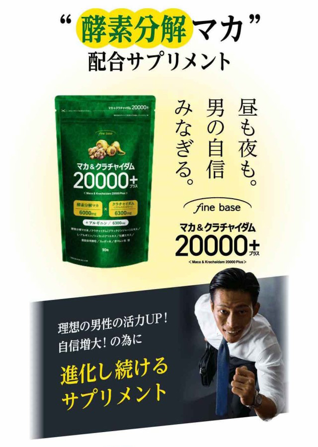 finebase マカ&クラチャイダム 20000プラス 90粒 約30日分 マカ 亜鉛 アルギニン マカサプリ 日本製 活力支援サプリメント 活力 増大 亜鉛サプリ メンズサプリ 男性 女性 体力 活力サプリ 元気 夜 maka maca 活力支援サプリ 酵素分解マカ【送料無料】