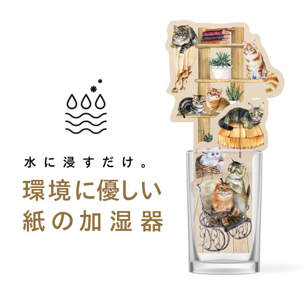 odecomart ペーパー加湿器(CAT) エコ加湿器 日本製 電気不要 卓上 オフィス 子供部屋 おしゃれ ペーパー加湿器 エコロジー 猫