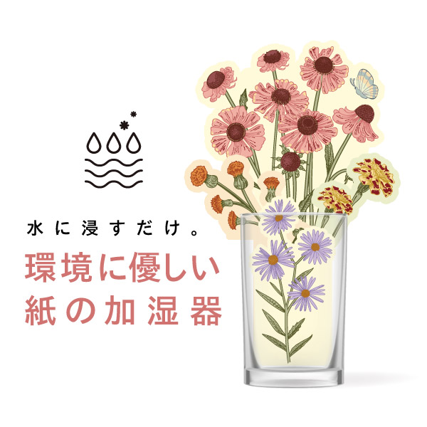 水を吸い上げると自然気化する、紙で作られたECOな加湿器。
