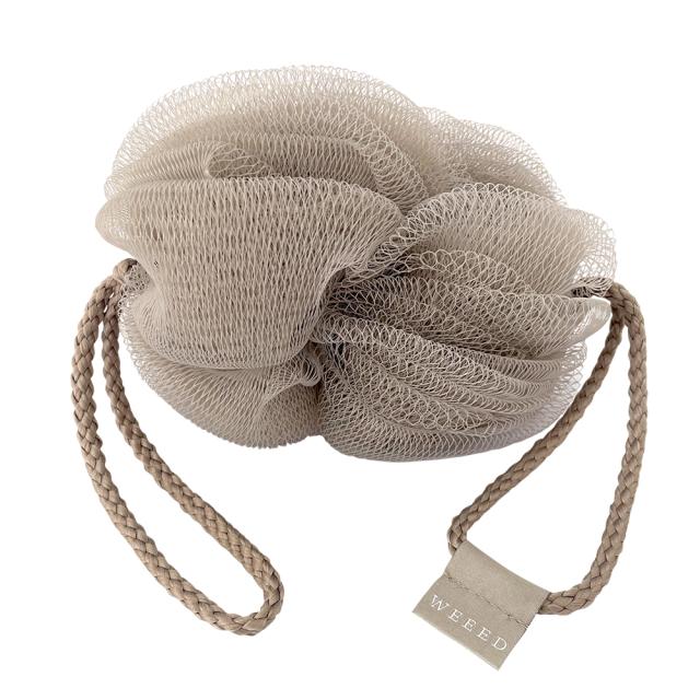 WEEEDオリジナルの泡立てネットロングver.。伸縮性があり、届きにくい背中もしっかり洗えます。
