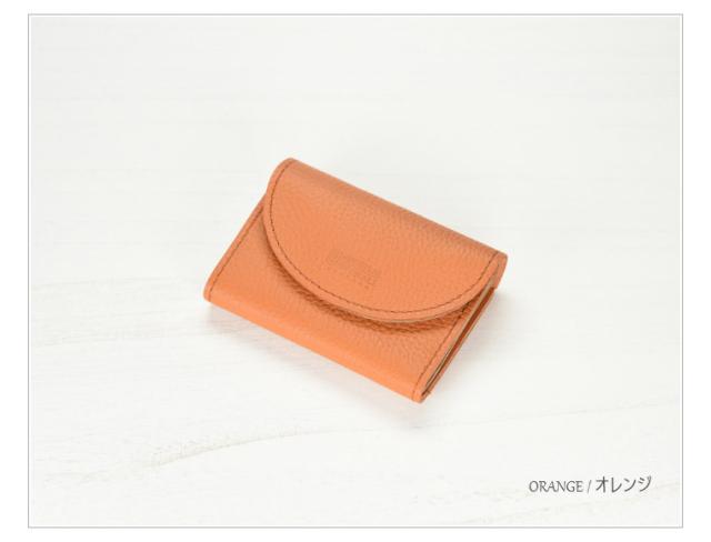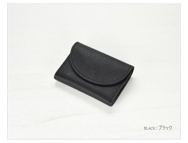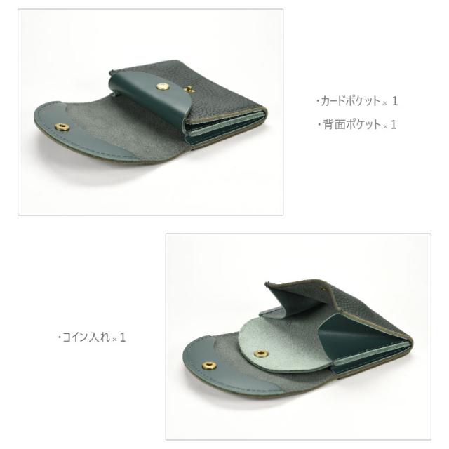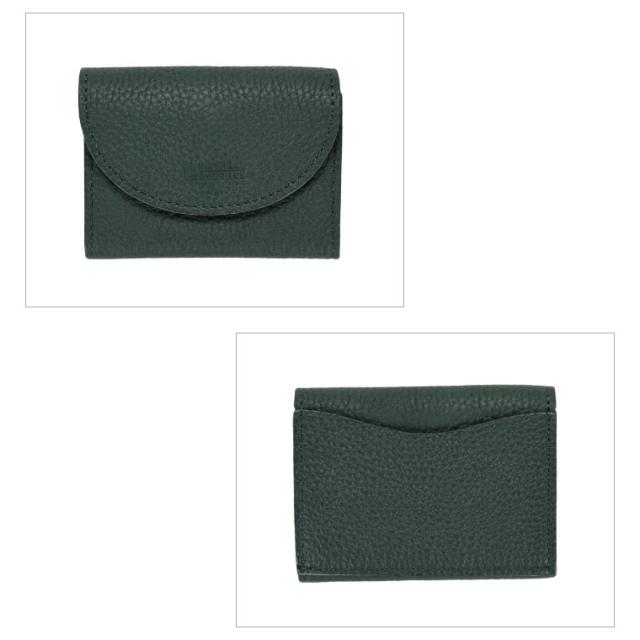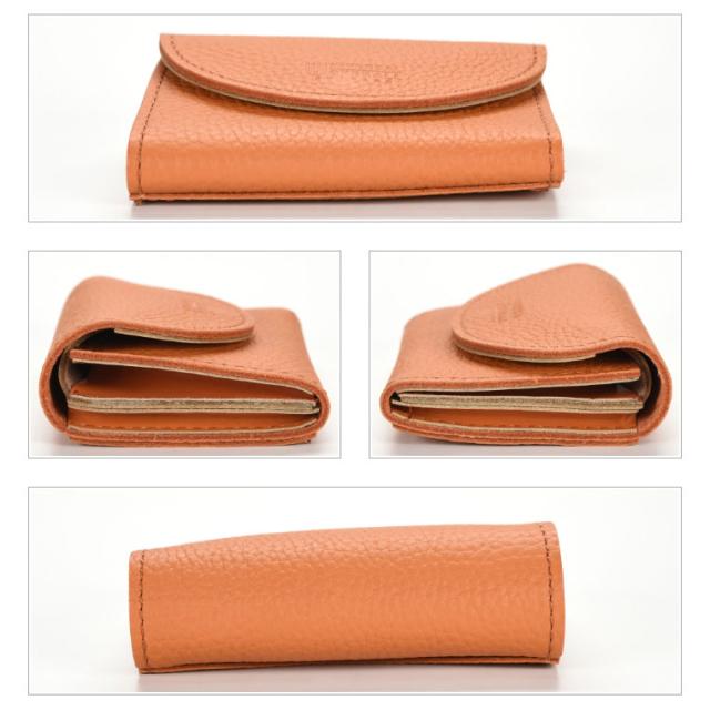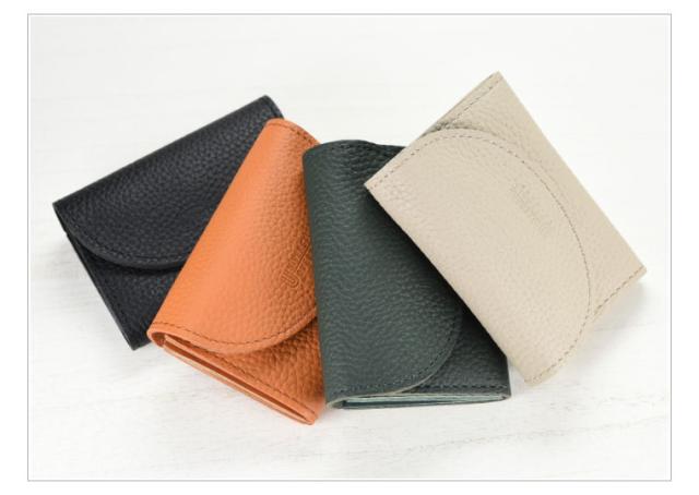 シボ感のある柔らかくしなやかな革で仕立てられており、二つのフラップでコインと少しの折り畳んだお札が入る人気の形です。