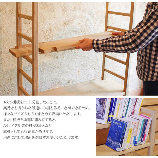 棚の高さはご自身の好きな高さにする事ができ、棚自体も横方向に分割してご利用いただけます。