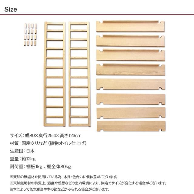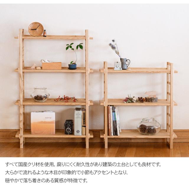 オークヴィレッジ 木製収納棚 Kigumiシェルフ4段 リビング収納 ディスプレイ シェルフ ラック 無垢 木製 天然木 オープンラック 北欧 マルチラック オープンシェルフ インテリア ナチュラル シンプル おしゃれ 国産 日本製