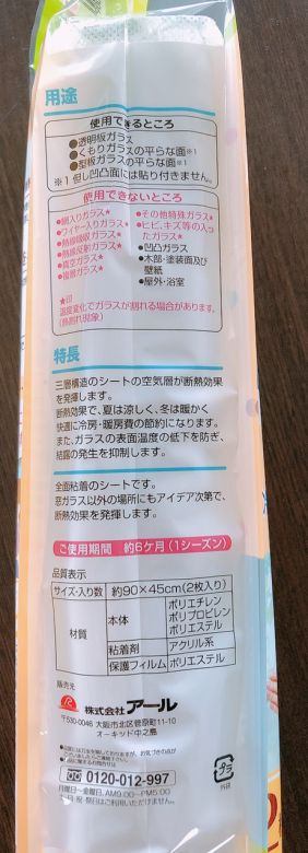 商品説明 | 全面粘着 簡単貼るだけ! マドピタ目隠しシート リーフ&バード柄 断熱効果で冷暖房費を節約! 三層構造シートにさらに断熱性に優れた不織布を重ねました サイズ:約90cm×45cm(2枚入り) 材質:本体 ポリエチレン、ポリプロピレン、ポリエステル 粘着剤:アクリル系 保護フィルム:ポリエステル 【使用できるところ】 透明板ガラス 曇りガラスの平らな面(凹凸面には貼りつきません) 型板ガラスの平らな面(凹凸面には貼りつきません) 【使用できないところ】 網入りガラス ワイヤー入りガラス 熱線吸収ガラス 熱線反射ガラス 真空ガラス 複層ガラス その他特殊ガラス ヒビ、キズ等の入ったガラス 木部・塗装面及び壁紙 室外・浴室 ※温度差変化でガラスが割れる場合があります。(熱割れ現象) ご使用期間:約6か月(1シーズン) その他、パッケージ裏面のご注意事項をよく読んでご利用ください。 |