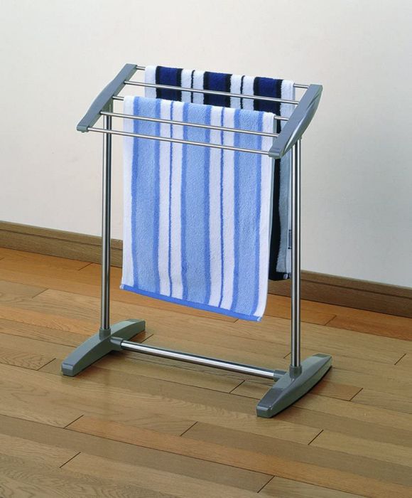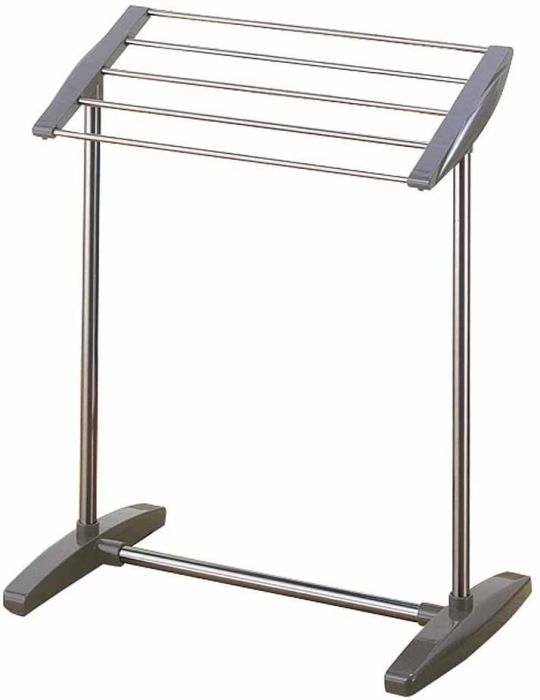 商品説明 | 商品サイズ:高さ59×幅50×奥行32cm カラー:ステン&グレー 商品重量(約):0.8kg 耐荷重量(約):5kgまで(タオル5枚ほし) パイプ:ステンレス巻きスチールパイプ直径19mm ステンレスパイプ直径8mm 部品:ABS樹脂金属部品 ネジ類:スチール(メッキ) 抜群の安定性。コンパクトで移動も簡単 ●コンパクトな省スペース ●タオルが掛けやすい傾斜掛け部 ※化粧箱のまま発送する場合がございます。 |