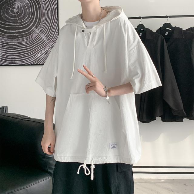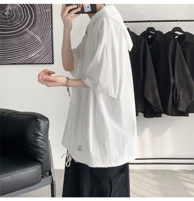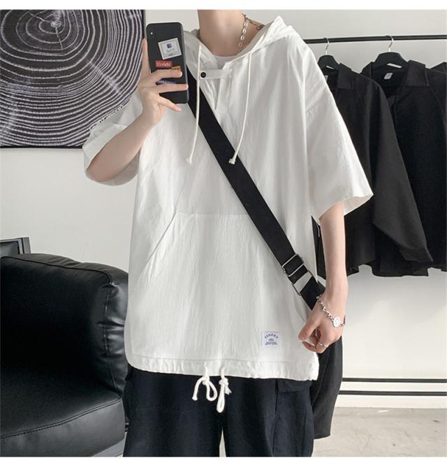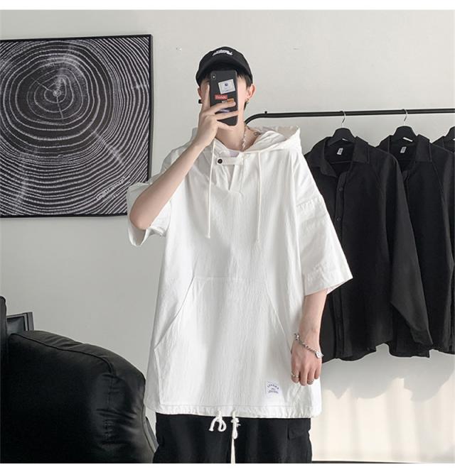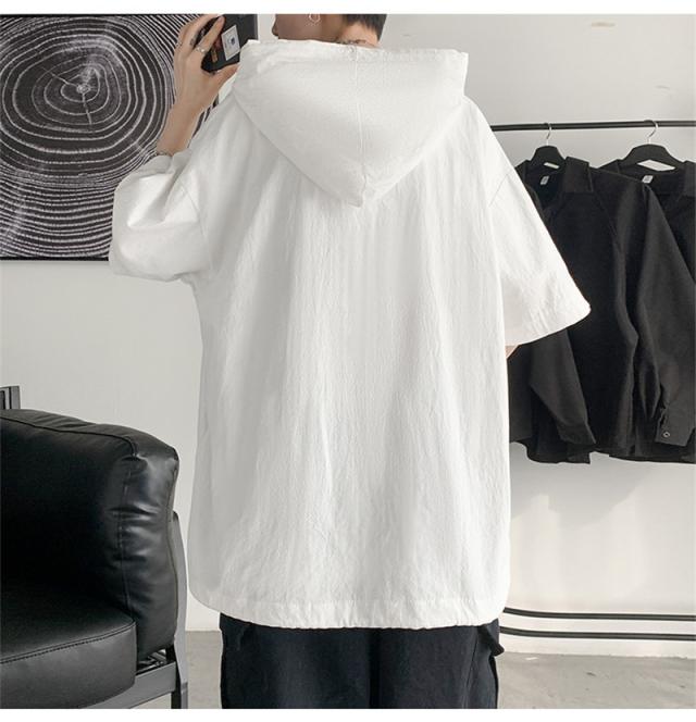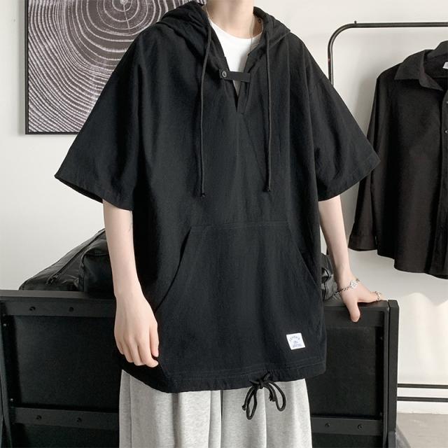 リネンTシャツ メンズ 半袖tシャツ Tシャツ 綿麻 無地 夏物 リネン フード付き 5分袖 トップス カットソー メンズファッション Vネック