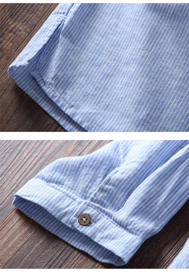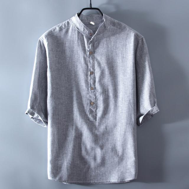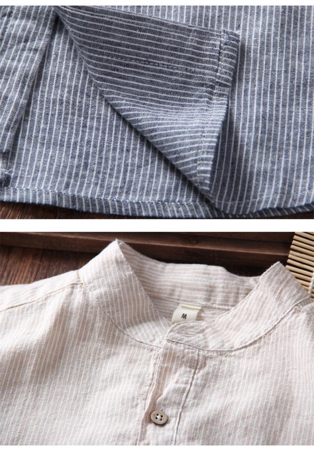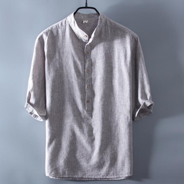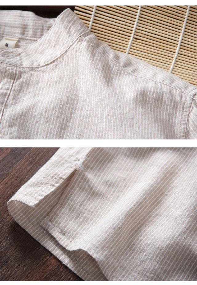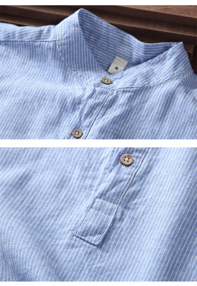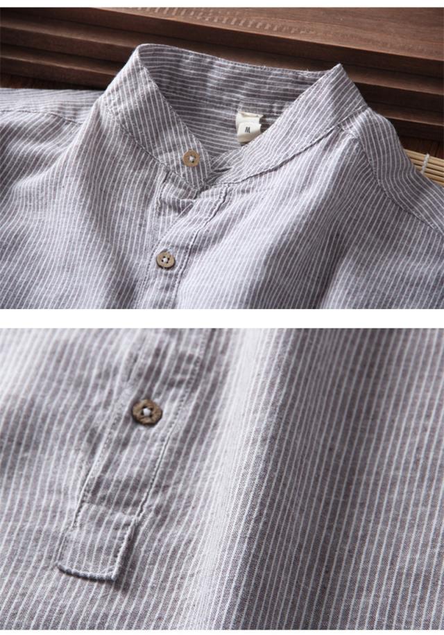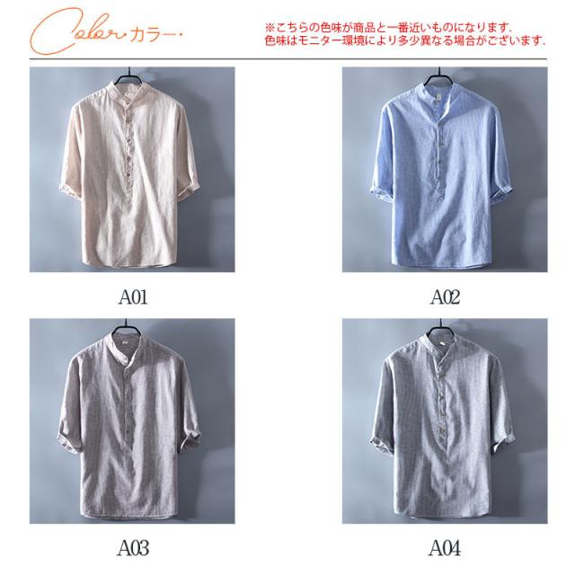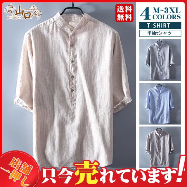 リネンTシャツ メンズ 半袖tシャツ Tシャツ 綿麻 無地 夏物 リネン ボタン付き 5分袖 ストライプ カットソー メンズファッション 立ち襟