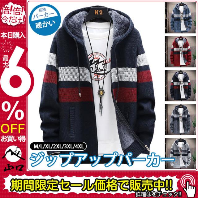 裏起毛パーカー メンズ ニットコート 暖かい ジップアップパーカー スウェットパーカー ファッション スエット 防寒 カーディガン 立ち襟 冬 薄ボア