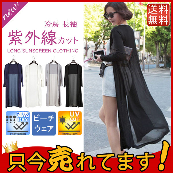 大人気 カーディガン uvカットレディース ロング丈シャツ 薄手 シフォン トップス 冷房 長袖 紫外線カット シースルー ビーチウェア 透ける 送料無料
