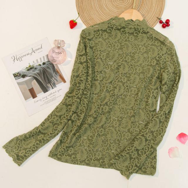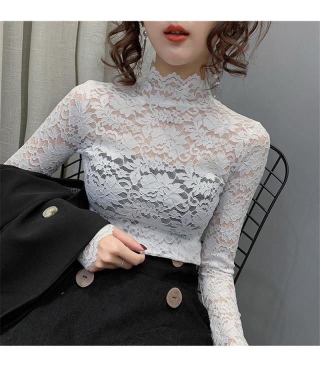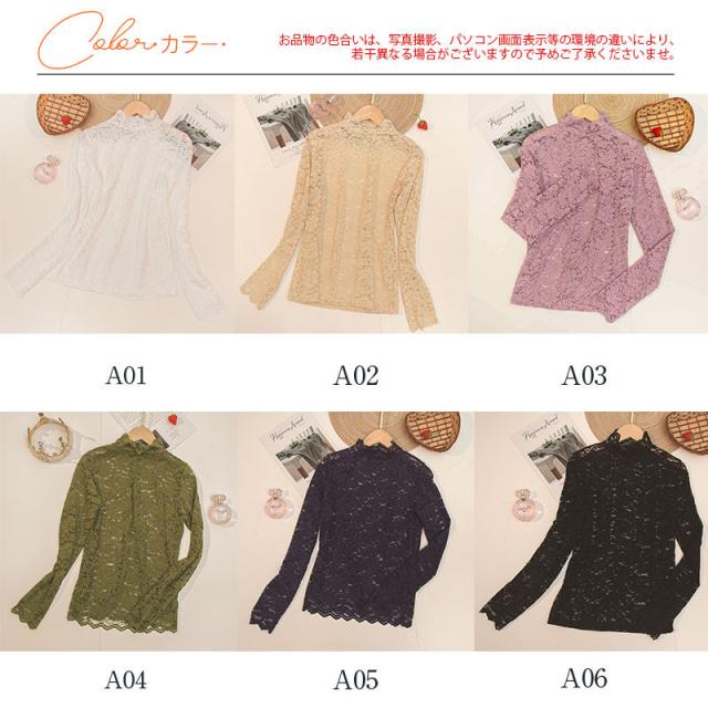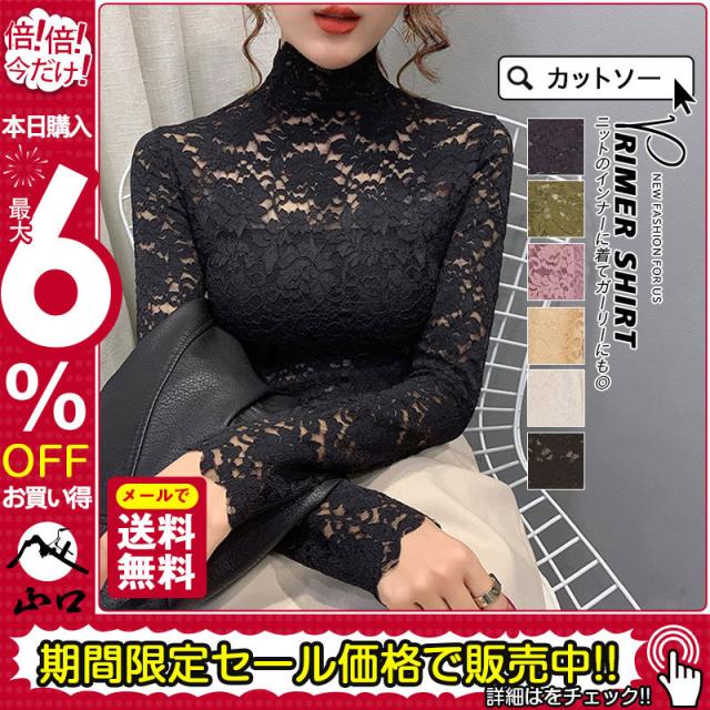 カットソー Tシャツ レディース インナー 長袖 透け感 春秋 花柄レース おしゃれ シンプル 細身 トップス 無地送料無料 セクシー 薄手 ストレッチ