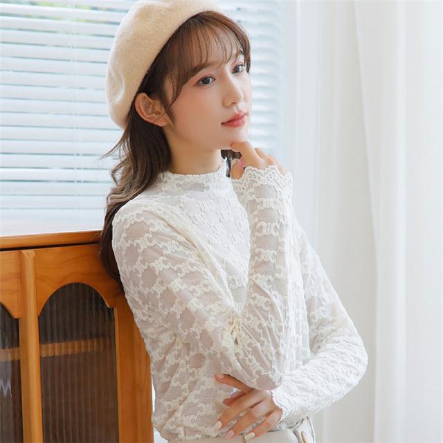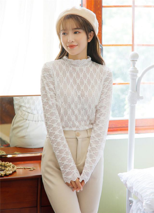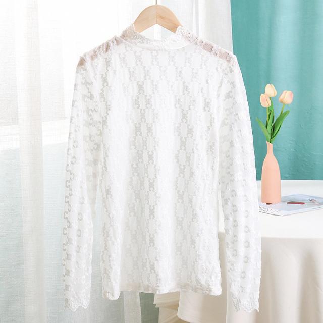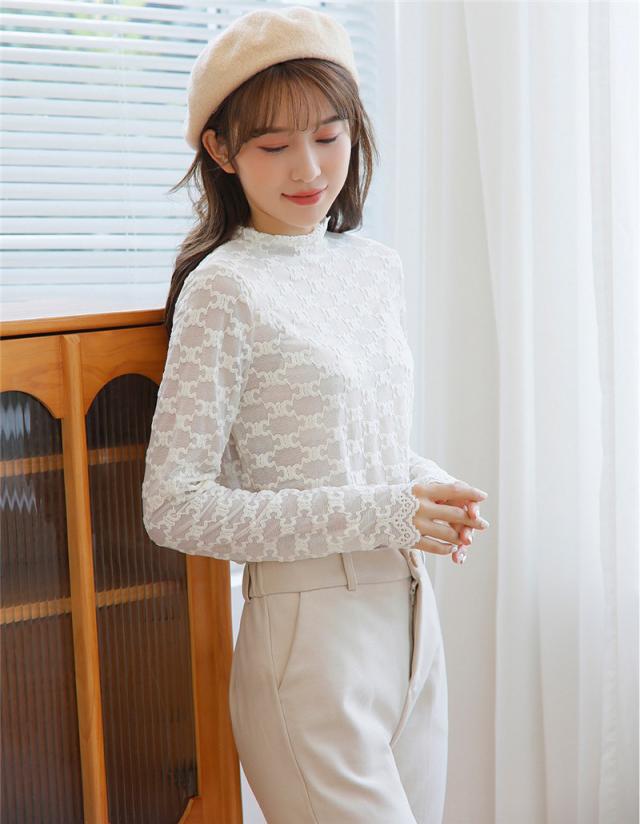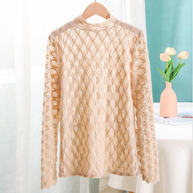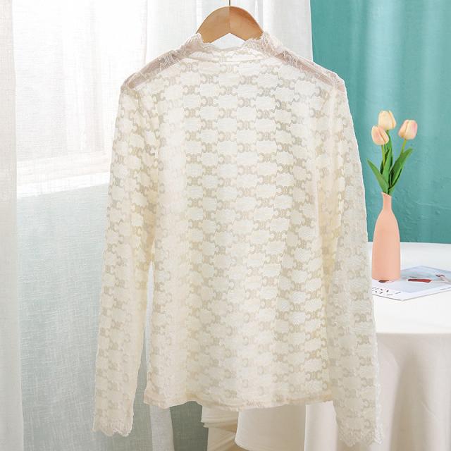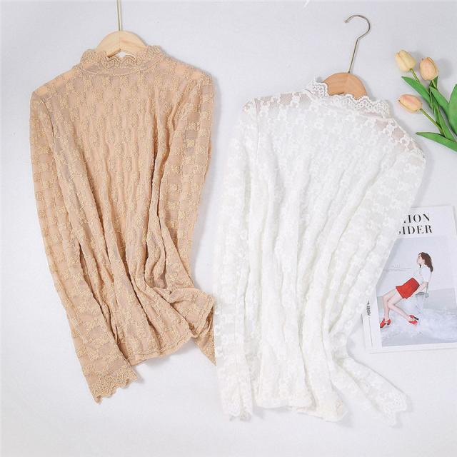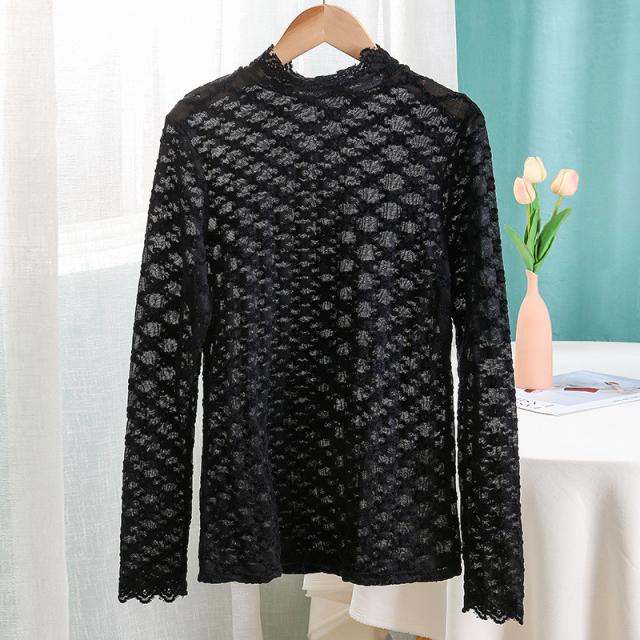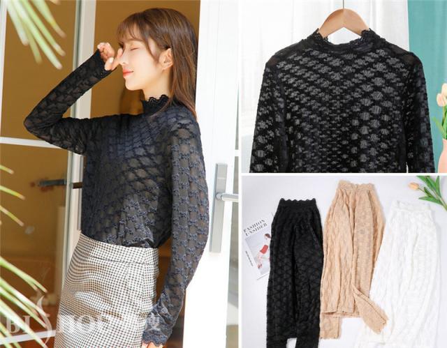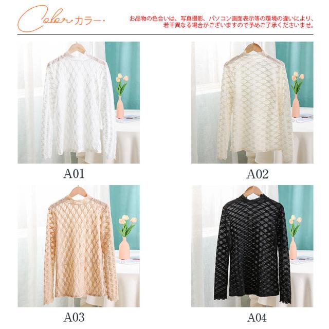 カットソー Tシャツ レディース インナー 長袖 透け感 春秋 花柄レース おしゃれ シンプル 細身 トップス 無地送料無料 セクシー 薄手 ストレッチ