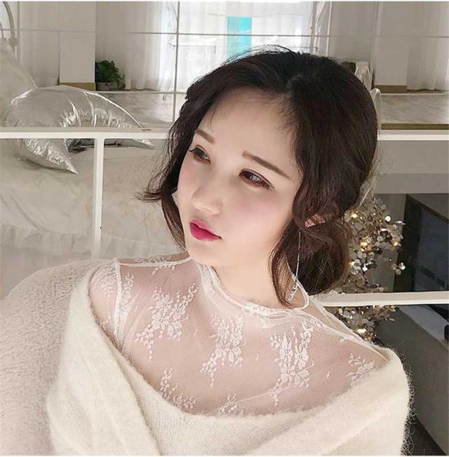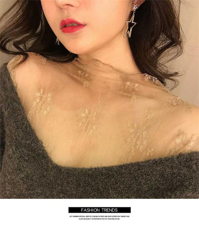カットソー Tシャツ レディース インナー 長袖 透け感 春秋 花柄レース おしゃれ シンプル 細身 トップス 無地送料無料 セクシー 薄手 ストレッチ