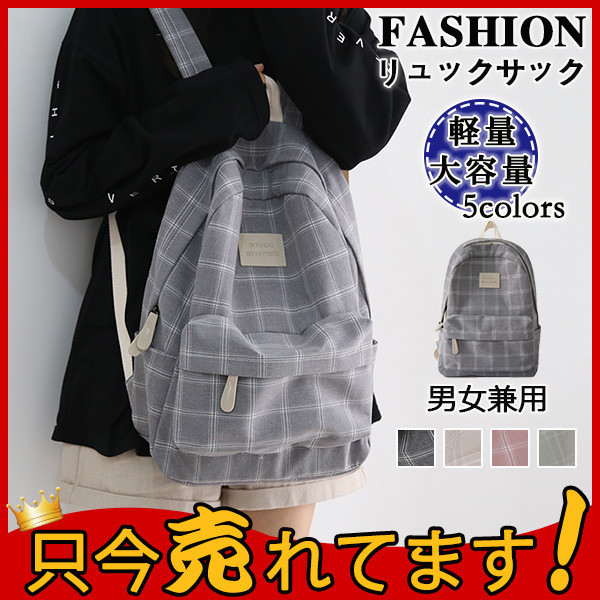 リュック レディースバッグ マザーズバッグ リュックサック チェック柄 A4対応 大容量 カバン 軽量 通勤 通学 外出 キャンバス プレゼント 爆売中