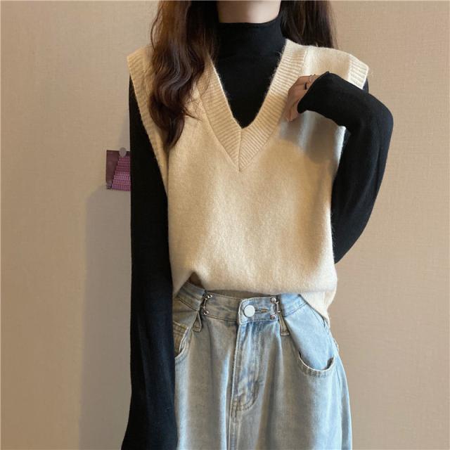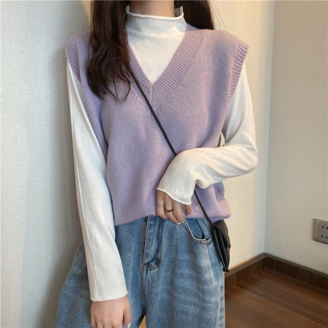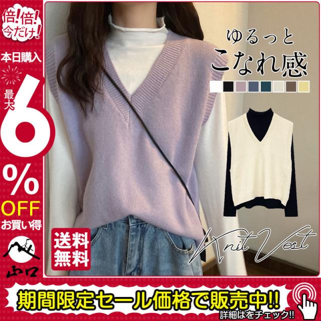ニットベスト レディース チョッキ トップス Vネック ショート ゆったり プルオーバー ベスト ジレー セーター 無地 秋コーデ カジュアル 重ね着