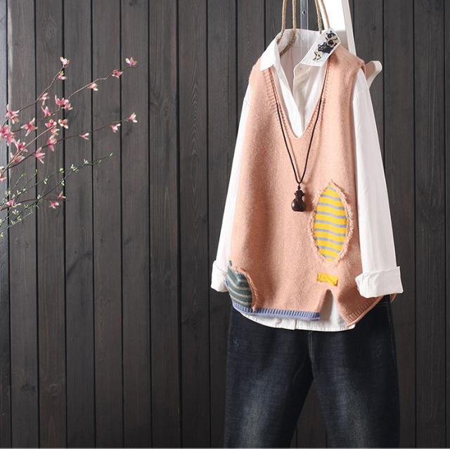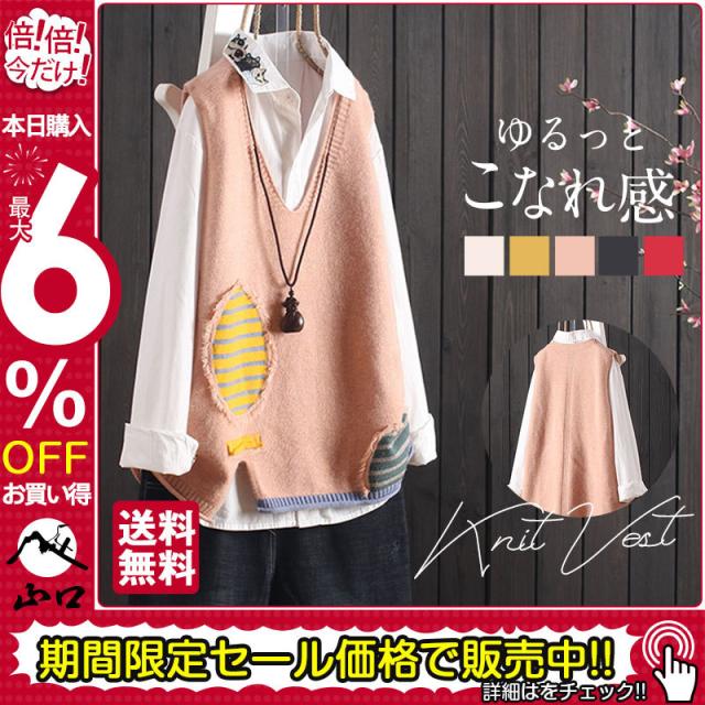 ニットベスト レディース チョッキ トップス Vネック 薄手 ゆったり プルオーバー ベスト ジレー セーター 無地 秋コーデ カジュアル 重ね着