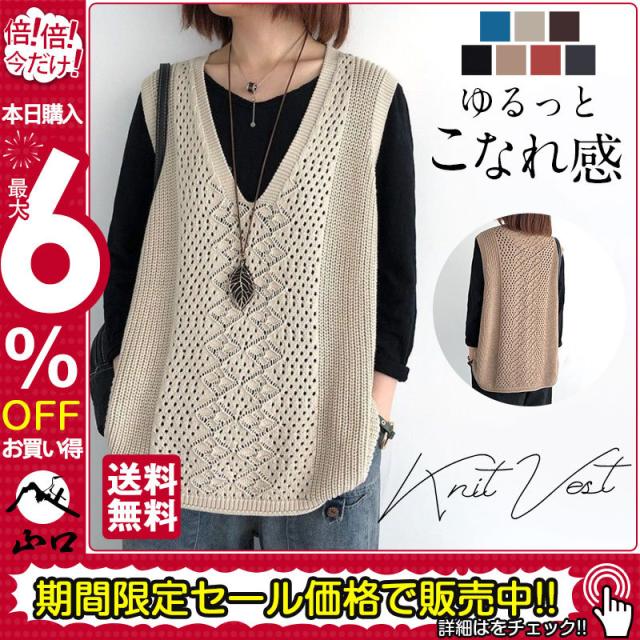 メーカー希望小売価格: 2,980円ニットベスト レディース チョッキ トップス Vネック 薄手 ゆったり プルオーバー ベスト ジレー セーター 無地 秋コーデ カジュアル 重ね着 送料無料