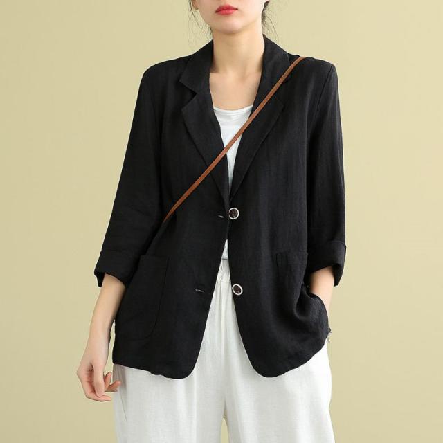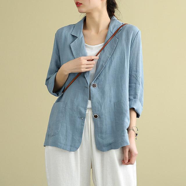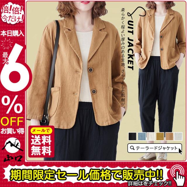 テーラードジャケット スーツジャケット レディース 春秋 薄手 ジャケット 単品 オフィス 通勤 7分袖 綿麻混 涼しい 洗える きれいめ 美ライン