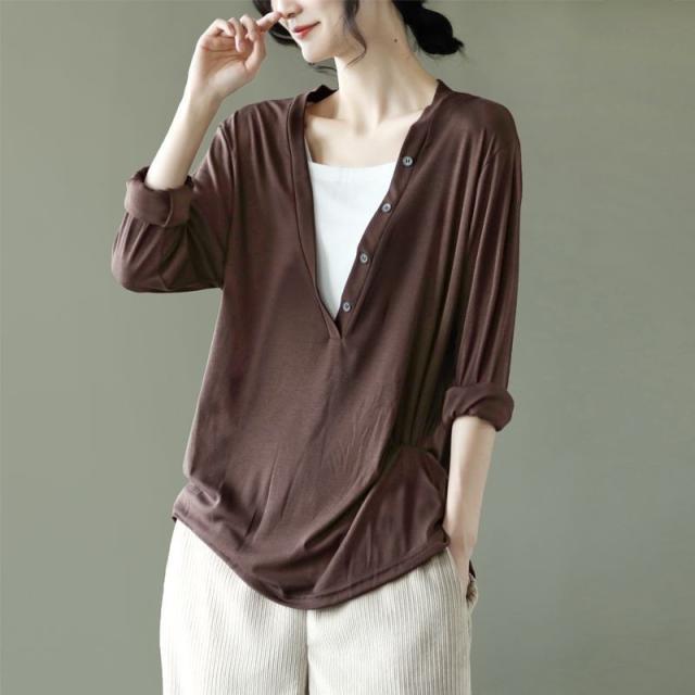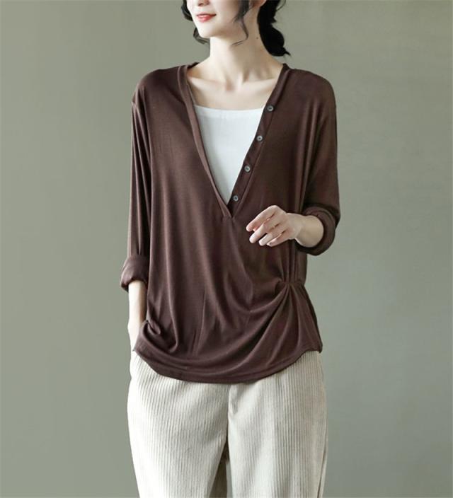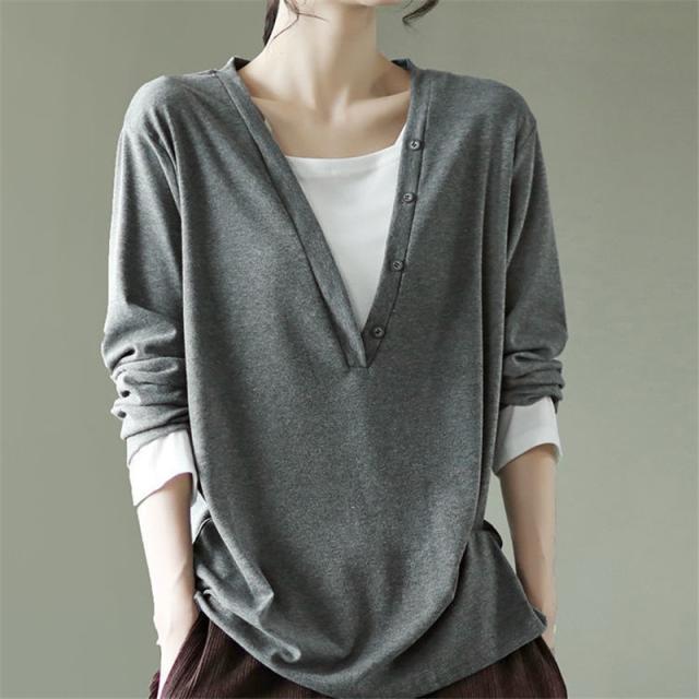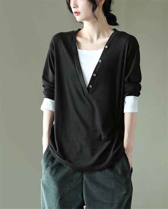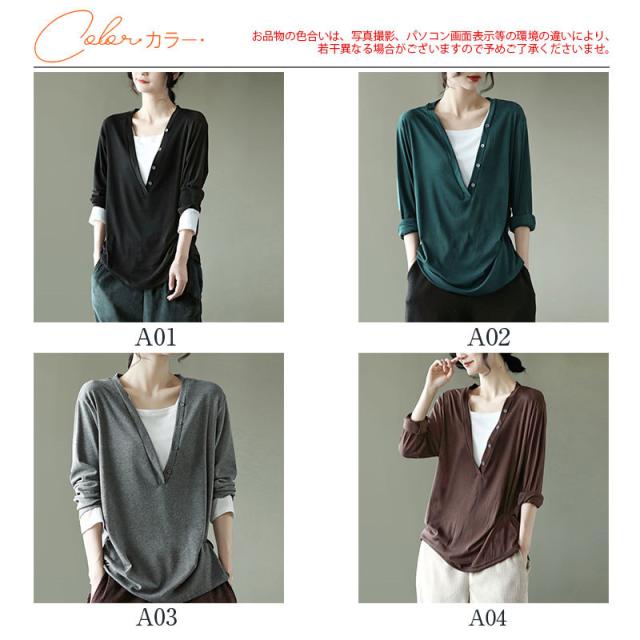 カットソー ロングTシャツ レディース ゆったり ラウンドカット トップス クルーネック 重ね着 長袖 ロンT やわらか 無地 上品 着痩せ 送料無料