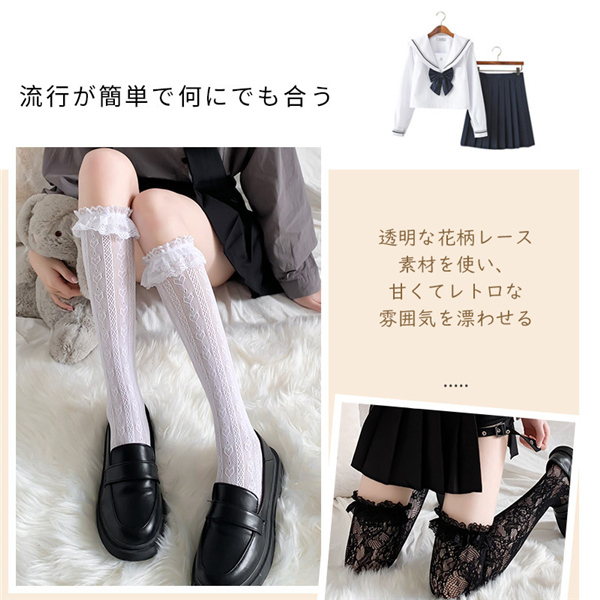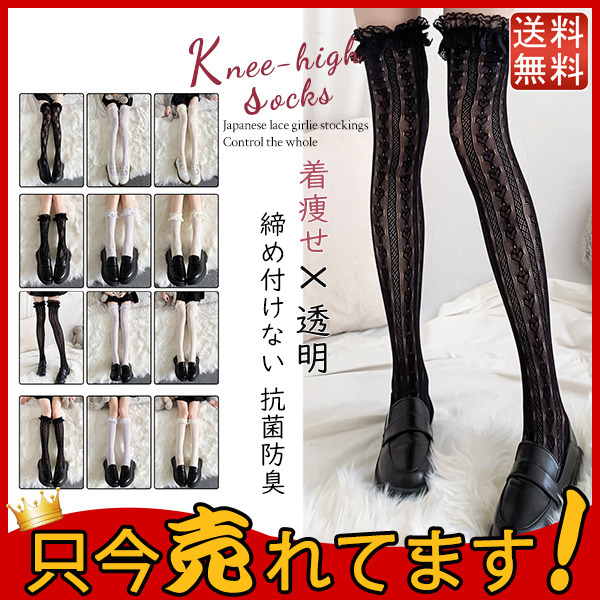 送料無料!靴下 レース ハイソックス 薄手 透明 レディース 締め付けない 快適 抗菌防臭 吸湿速乾 かわいい おしゃれ