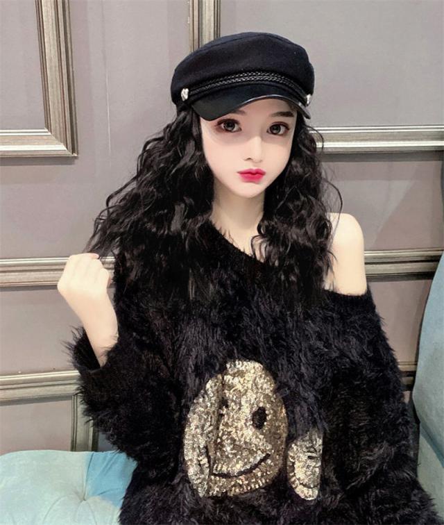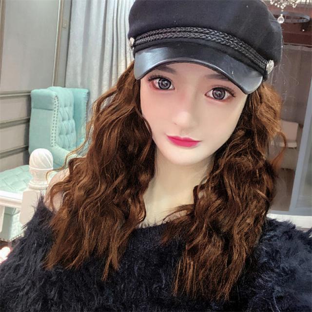帽子付き ウィッグ 簡単イメチェン ロング カール 帽子 送料無料 フルウィッグ 耐熱 コスプレ ウェーブ おしゃれ パーマ 仮装 変装 ハット