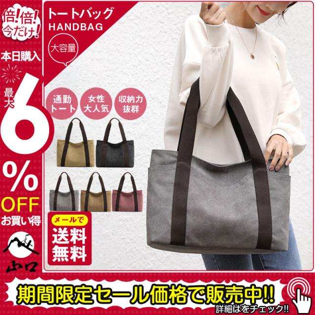 トートバッグ 大容量 レディース A4 ママバッグ ズック ファスナー ハンドバッグ 肩掛け手提げ 仕事用 ハンドバッグ 通学 通勤 オフィス 送料無料