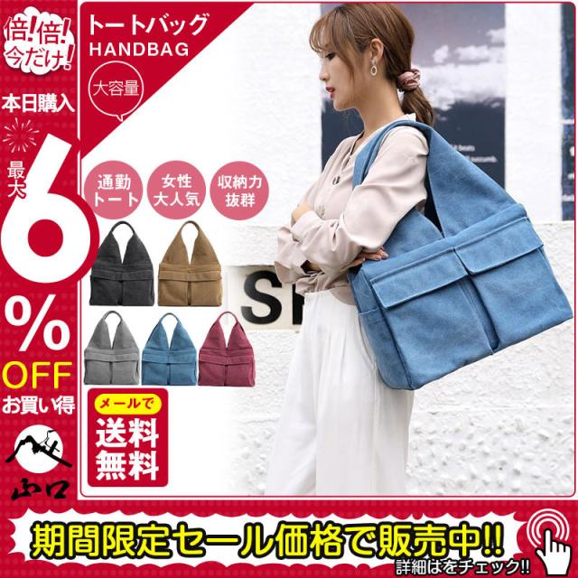 トートバッグ 大容量 レディース A4 ママバッグ ズック ファスナー ハンドバッグ 肩掛け手提げ 仕事用 ハンドバッグ 通学 通勤 オフィス 送料無料