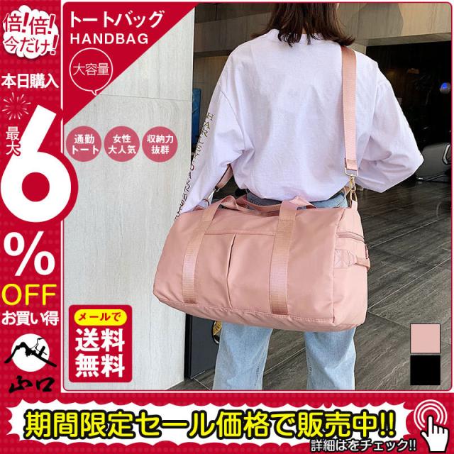 商品詳細:カラー:/ピンク/ブラックサイズ:/フリーサイズ素材:防水・軽量・傷に強い高品質ナイロン素材を使用サイズ:50cm*25cm*26cm重さ:約0.71kg乾湿分離ポケット丈夫なバッグなのでいっぱい収納可能ノートパソコンが入り、書類などの資料もたっぷり収納できる。薄手の衣類や日常用品、化粧品なども一緒に入れます。お菓子や、野菜などの食料品も入れることも出来ます。スーパーやコンビニへのお買い物はもちろん、出張や1-2泊程度の外出、ピクニックやプール海辺の遊びにもパッチリで、旅行のサブバッグとしても活躍できます。※寸法は手測りなので若干誤差がございますが、ご了承くださいませ。※お品物の色合いは、写真撮影、パソコン画面表示等の環境の違いにより、若干異なる場合がございますので予めご了承くださいませ。