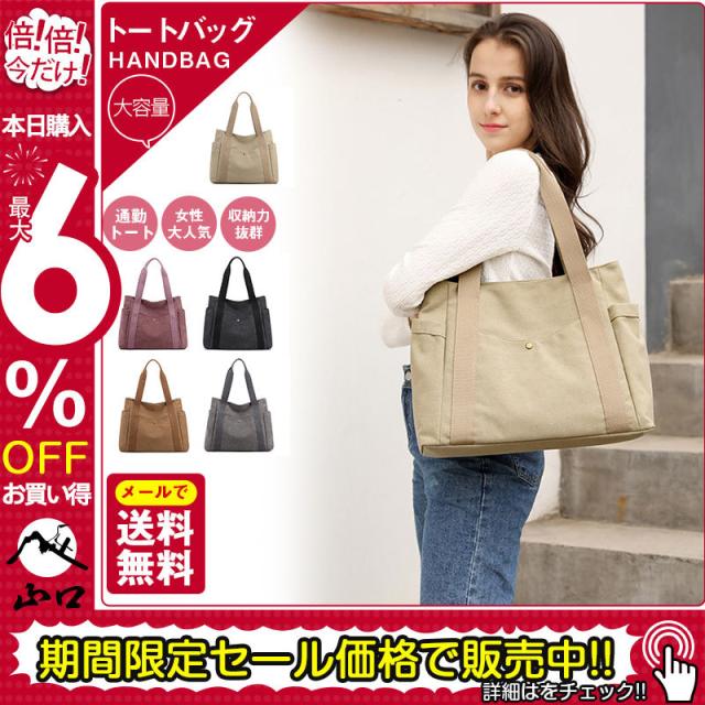 トートバッグ 大容量 レディース A4 ママバッグ ズック ファスナー ハンドバッグ 肩掛け手提げ 仕事用 ハンドバッグ 通学 通勤 オフィス 送料無料