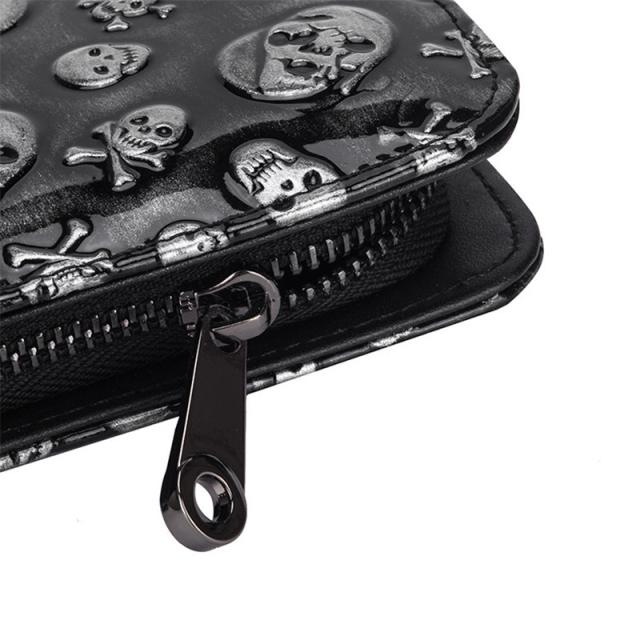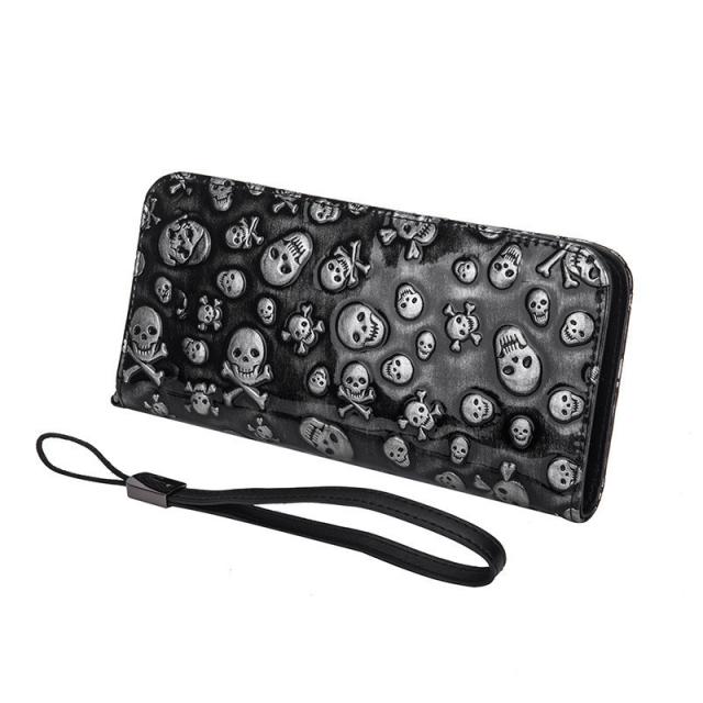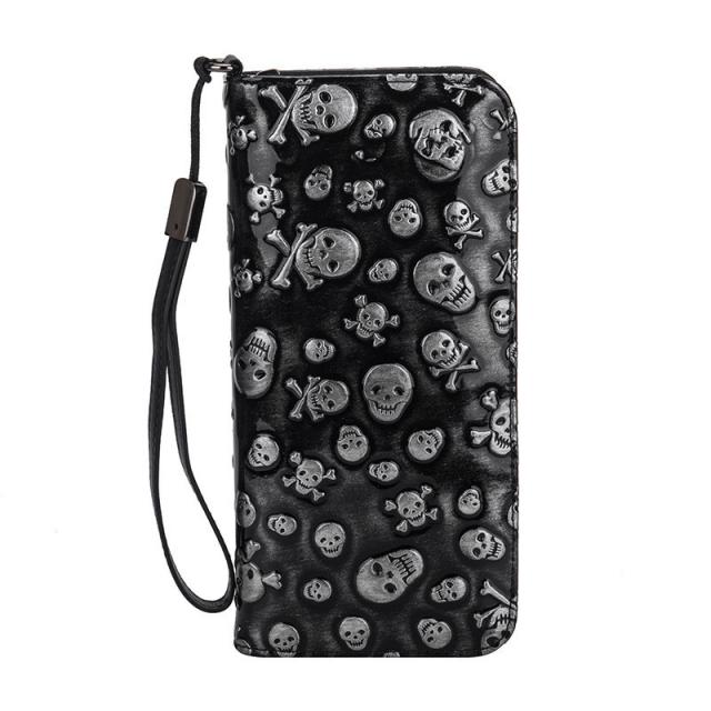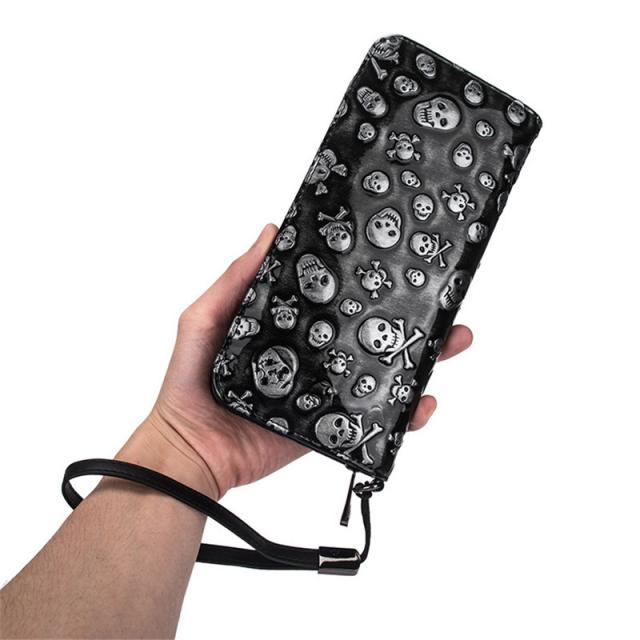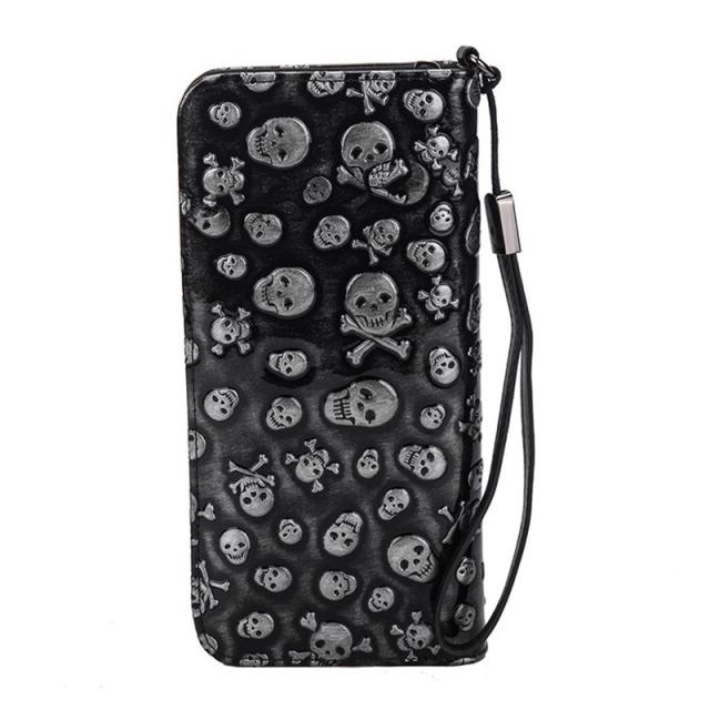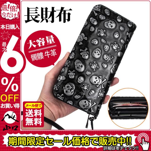 長財布 メンズ レディース 財布 レザー お札入れ 牛革 牛皮 レトロ 髑髏 ファスナー 大容量 多機能 ビジネス かっこいい カード 収納力 送料無料