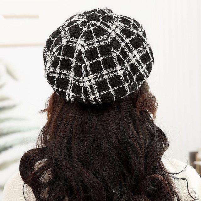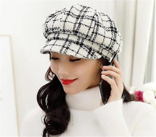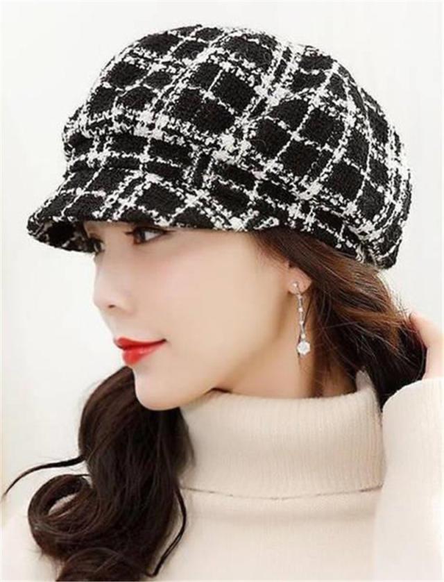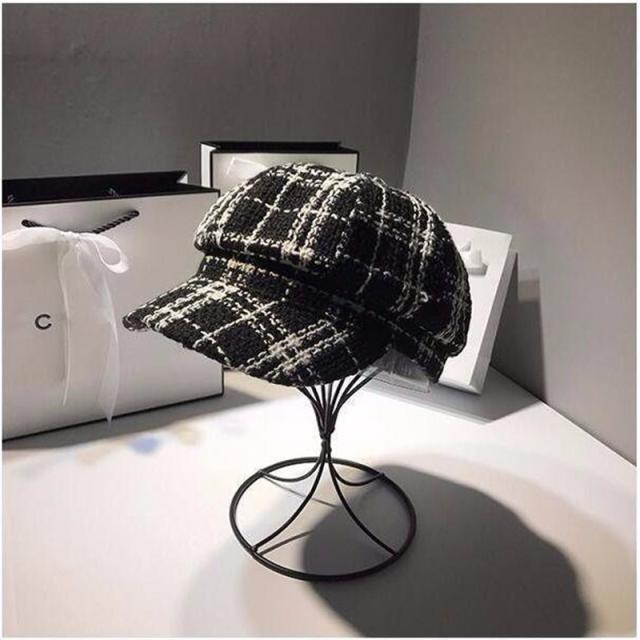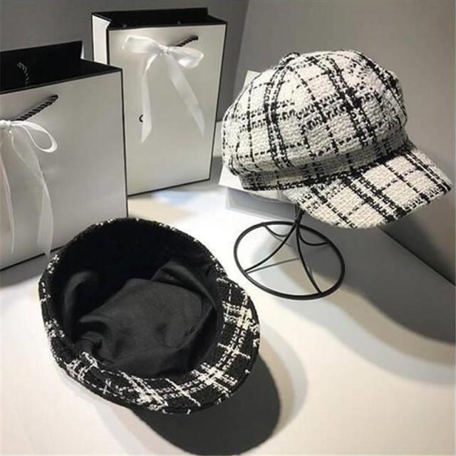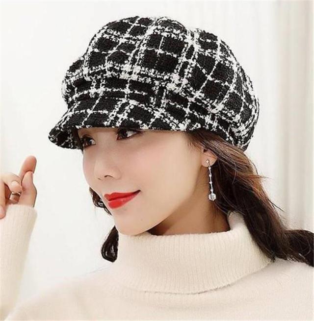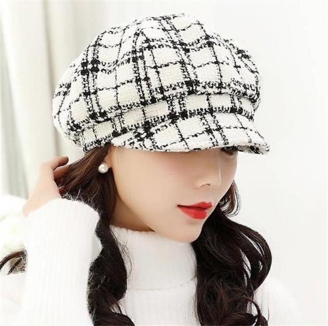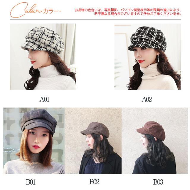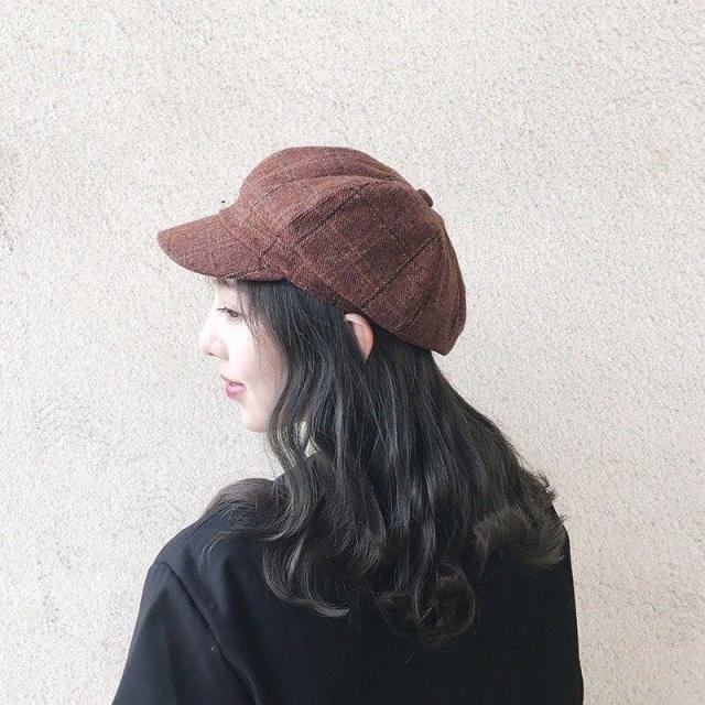 キャスケット レディース 帽子 秋冬 お洒落 春 可愛い 小顔効果 クラシカル レトロ カジュアル 日よけ キャップ チェック柄 ツバ付き 送料無料