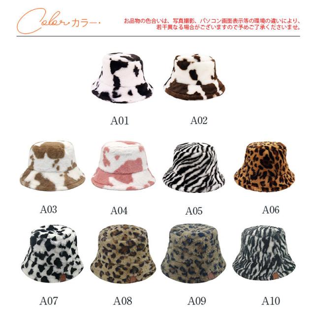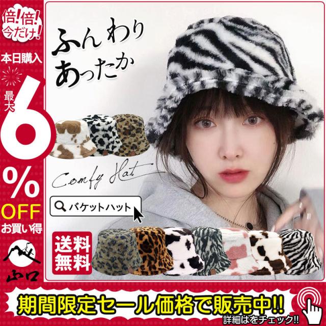 バケットハット ファー帽子 レディース ハット フェイクファー 小顔効果 ふわふわ もこもこ ヒョウ柄 厚手 防寒 保温 折りたたみ おしゃれ 可愛い