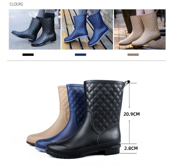 商品詳細:カラー:/A01/A02/A03サイズ:/23/23.5/24/24.5/25/25.5/26アッパー素材:PVCソール素材:EVA筒丈の高さ:20cm ヒール高さ:1-3cm・シンプル&おしゃれなデザイン・優れた防水と撥水性 本体は優れた撥水性素材を使用しておりますので、雨や雪の日はおしゃれなレインブーツとしてご使用頂けます。・安心の滑り止め ブーツのソール部分は滑り止め付きですので、足元の悪い雨道、雪道でも滑りにくく安心です。・歩きやすいローヒールの為、長距離の歩行にも疲れにくいデザインのブーツとなっております。※寸法は手測りなので若干誤差がございますが、ご了承くださいませ。※商品は縫製上の細かいほつれ、汚れ、接着剤が残り、素材特有の臭いや接着剤等の臭い、輸送中の型崩れや折りシワが残っている場合がございます。交換/返品対象外になりますので、ご了承ください。※お品物の色合いは、写真撮影、パソコン画面表示等の環境の違いにより、若干異なる場合がございますので予めご了承くださいませ。
