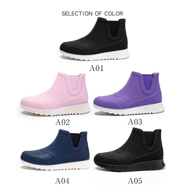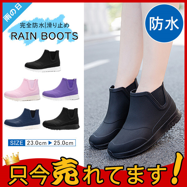 商品詳細:カラー:/A01/A02/A03/A04/A05サイズ:/23/23.5/24/24.5/25アッパー素材:PVCソール素材:PVCヒール高さ:3-5cmシンプル&おしゃれなデザイン・優れた防水と撥水性 本体は優れた撥水性素材を使用しておりますので、雨や雪の日はおしゃれなレインブーツとしてご使用頂けます。・安心の滑り止め ブーツのソール部分は滑り止め付きですので、足元の悪い雨道、雪道でも滑りにくく安心です。・歩きやすいローヒールの為、長距離の歩行にも疲れにくいデザインのブーツとなっております。※寸法は手測りなので若干誤差がございますが、ご了承くださいませ。※甲高、幅広の方は普段よりワンサイズ上の方をおすすめ致します。※商品は縫製上の細かいほつれ、汚れ、接着剤が残り、素材特有の臭いや接着剤等の臭い、輸送中の型崩れや折りシワが残っている場合がございます。交換/返品対象外になりますので、ご了承ください。※お品物の色合いは、写真撮影、パソコン画面表示等の環境の違いにより、若干異なる場合がございますので予めご了承くださいませ。