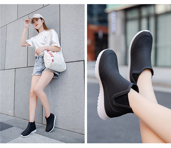 レインブーツ レディースシューズ レインシューズ ゴム付き シューズ 雨靴 フラットシューズ 美シルエット 美脚 滑り止め 大きいサイズ