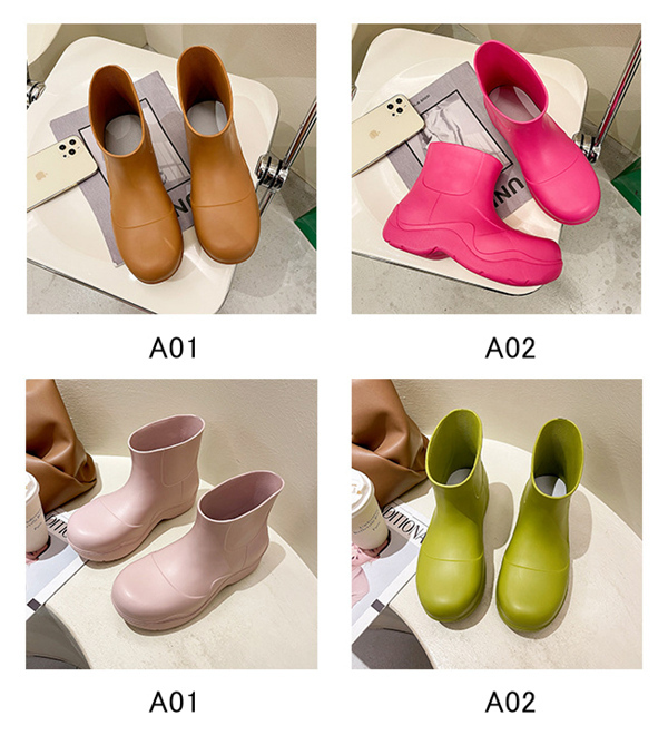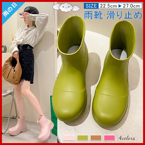 商品詳細:カラー:/A01/A02/A03/A04サイズ:/22.5/23/23.5/24/24.5/25/25.5/26/26.5/27アッパー素材:EVAソール素材:EVA筒丈の高さ:7cm ヒール高さ:4cm・シンプル&おしゃれなデザイン・優れた防水と撥水性 本体は優れた撥水性素材を使用しておりますので、雨や雪の日はおしゃれなレインブーツとしてご使用頂けます。・安心の滑り止め ブーツのソール部分は滑り止め付きですので、足元の悪い雨道、雪道でも滑りにくく安心です。・歩きやすいローヒールの為、長距離の歩行にも疲れにくいデザインのブーツとなっております。※寸法は手測りなので若干誤差がございますが、ご了承くださいませ。※商品は縫製上の細かいほつれ、汚れ、接着剤が残り、素材特有の臭いや接着剤等の臭い、輸送中の型崩れや折りシワが残っている場合がございます。交換/返品対象外になりますので、ご了承ください。※お品物の色合いは、写真撮影、パソコン画面表示等の環境の違いにより、若干異なる場合がございますので予めご了承くださいませ。