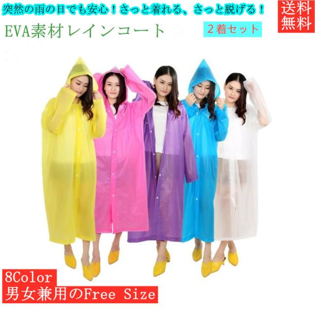 セール おトク レインコート 2着セット 8色 雨具 ポンチョ レインウエア カッパ 軽量 EVA 防水 撥水 速乾 通勤 通学 ブラック 自転車 バイク 男女兼用