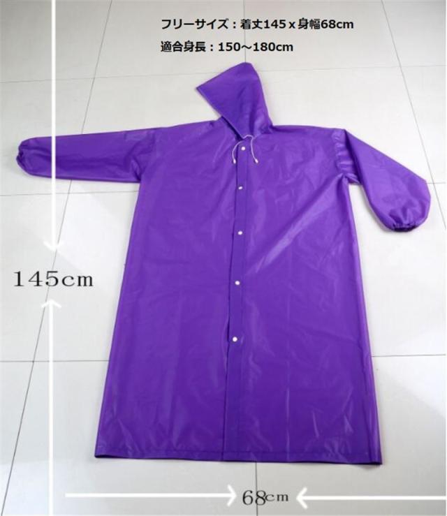本商品は同色2着セット販売になっております。異なる色をご購入のお客様は、ご注文手続きの際に、ご要望欄に、ご希望のカラーを記載してくださいませ。■【商品仕様】サイズ:総丈145cm、胸囲約140cm、袖丈70cm適応身長:150cm〜180cm重量:約140g材質:EVA防水性、耐摩耗性に優れた非毒性EVA素材を使用。軽くて、環境にやさしい便利グッズです。通気性も良く軽量で耐久性に優れ劣化しにくい素材です。厚さ0.14mmのレインコートは、丈夫で、裂けにくく、軽量で持ち運びが簡単。速乾性が高く、軽く振って水滴が落とせます。首元のところに紐とボタンがあり、調整することで雨や風の侵入を防ぐことができます。袖口はしっかりとしたデザインで、より効果的な防水を実現します。雨の日の通勤・通学の自転車乗りに最適! 登山、旅行、外出、スポーツ観戦、釣り、雪、バイクなど、さまざまなシーンで使用できるポンチョです。 男女問わず使えるオールシーズン対応のレインコートです。※こちらの商品は海外輸入品のため、多少の傷、汚れ、色落ちがある場合がございます