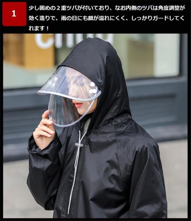レインコート 通学通勤 レディース 大きいつば カッパー 袖付き ジッパー 通気性 レインポンチョ メンズ 自転車 前開き 大きいサイズ ロング丈 ポンチョ レインウェア 素材:完全防水性オックスフォード生地生産メーカーのロットにより、帽子の紐は白と黒、2色がございますが、ランダムで発送をさせて頂きますので、予めご了承くださいませ!付属のつばには薄い保護フィルムが貼られていて、ご使用時には保護フィルムを剥がしてください。2重の前開きデザインで、内側はジッパー、外側はスナップホック止めになっていて、しっかりガードできます。取り外し可能な2重つばデザインになっていて、内側のつばは角度調整可で、下方向に調整することで、フェイスバイザーになり、顔が濡れにくく、化粧崩れなど心配なく、便利です。大きめのツバ部分は、やわらかいツバにありがちな、ツバで視界を遮ってしまったり、顔を覆ってしまわぬよう、少し硬めの素材でできています。袖は二重袖なっていて、風や雨の浸入を防ぎます。また、レインウェアに適度な厚みや重量を持たせることで、風の強い日や豪雨の時に、レインウェアが体にまとわりついたり、捲りあがるのを防ぎます。