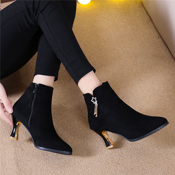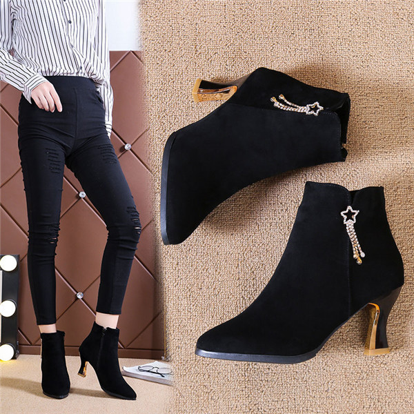 ショートブーツ レディース ハイヒール 星柄 ブーツ ブーティ 太ヒール チャンキーヒール 靴 歩きやすい 痛くない おしゃれ 美脚 外出 爆売中