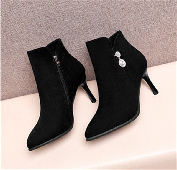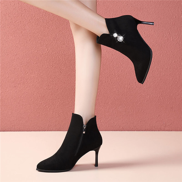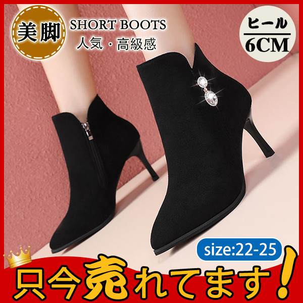 ショートブーツ レディース ハイヒール ストーン付き ブーツ ブーティ 太ヒール チャンキーヒール 靴 歩きやすい おしゃれ 美脚 外出 爆売中
