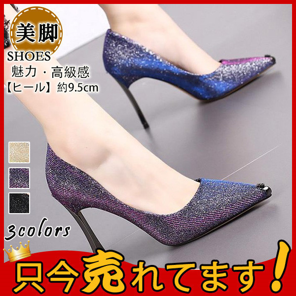 ハイヒール 爆売中 パンプス レディース オフィス 通勤 仕事 OL ビジネス 就活 9.5CM 美脚 痛くない 靴 シューズ 脱げる 細身ヒール ブラック 結婚式