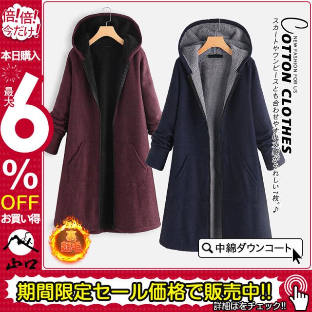 中綿ダウンコート レディース ロング丈 軽い 秋冬アウター 裏起毛コート 中綿ジャケット 裏ボアコート フード付き 厚手 暖かい 大きいサイズ ゆったり