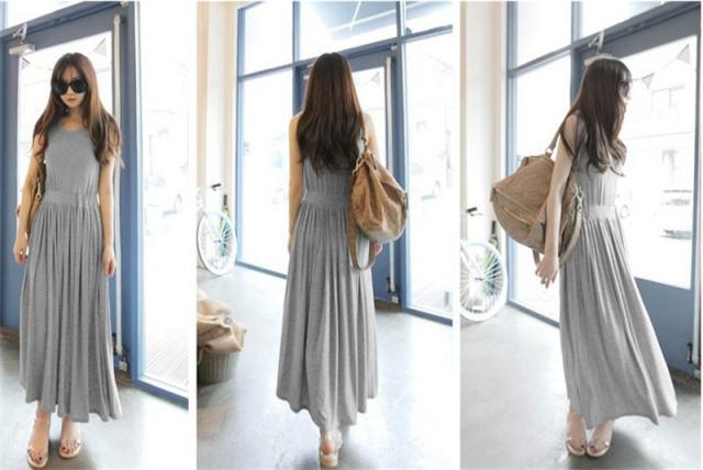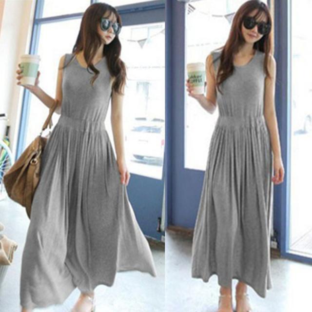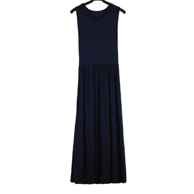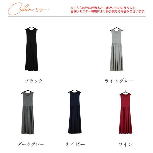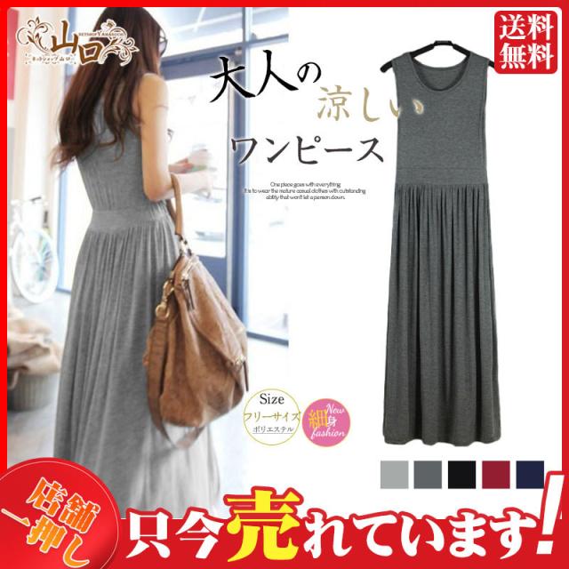 ワンピース レディース マキシワンピース 春 夏 ロングワンピ ノースリーブ 大人 体型カバー 無地 Uネック シンプル 送料無料