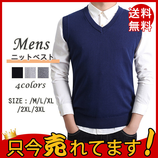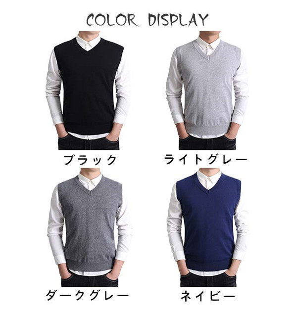 送料無料 ベスト メンズ ニットベスト ビジネス 洗える チョッキ トップス ノースリーブ vネック ジレー 紳士服 無地 秋 春 男性 通勤 通学