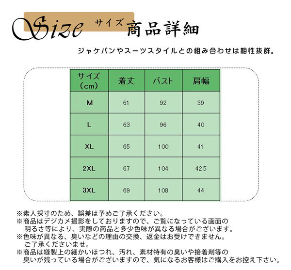 商品詳細:カラー:/ブラック/ライトグレー/ダークグレー/ネイビーサイズ:/M/L/XL/2XL/3XL【商品説明】『大人カジュアルは上品に仕上げる。』シンプルながらもおしゃれ!ジャケパンやスーツスタイルとの組み合わせは相性抜群。【素材】アクリル【ご注意】※素人採寸のため、誤差は予めご了承ください。※商品はデジカメ撮影をしておりますので、ご覧になっている画面の明るさ等により、実際の商品と多少色味が異なる場合がございます。※色味が異なる、臭いなどの理由の交換、返金はお受けできません。ご了承くださいませ。※商品は縫製上の細かいほつれ、汚れ、素材特有の臭いが残っている場合がございますので、気になるお客様はご購入をお控え下さい。【キーワード】人気上昇 ベスト ウール混 ニットベスト トップス 仕事着 ケーブル編み vネック 無地 シンプル 通勤 大きいサイズ ジレー フォーマル ノースリーブニットセーター 就活 カジュアル 仕事着 学生 ノースリーブ 重ね着 大きいサイズ ノースリーブニットセーター 冠婚葬祭