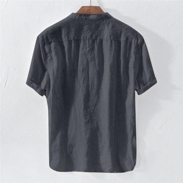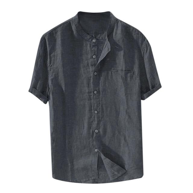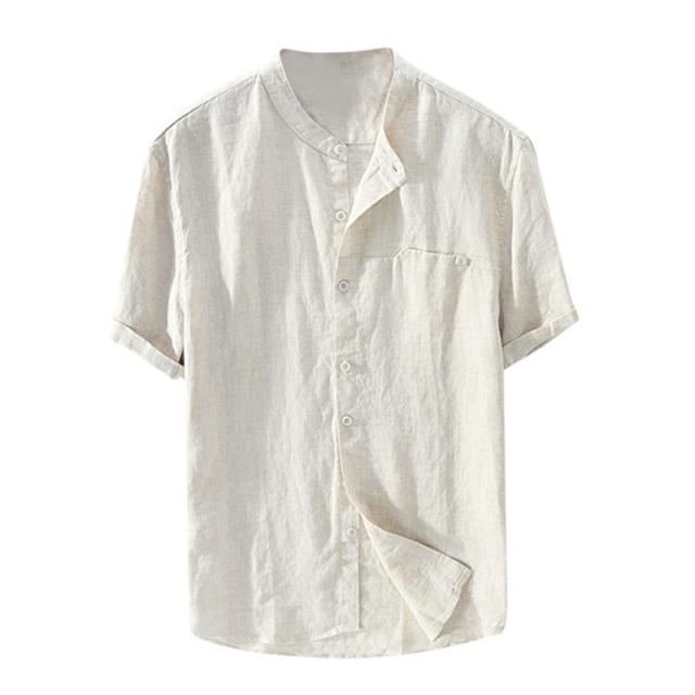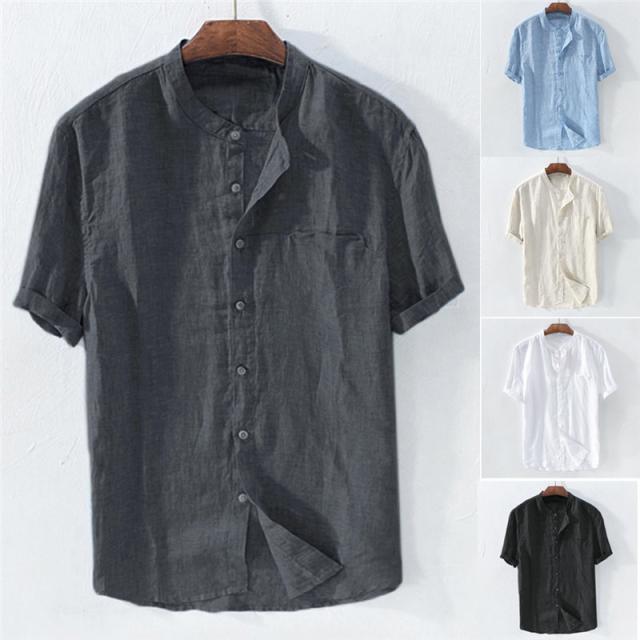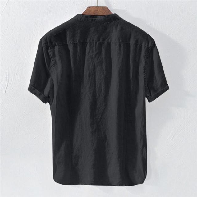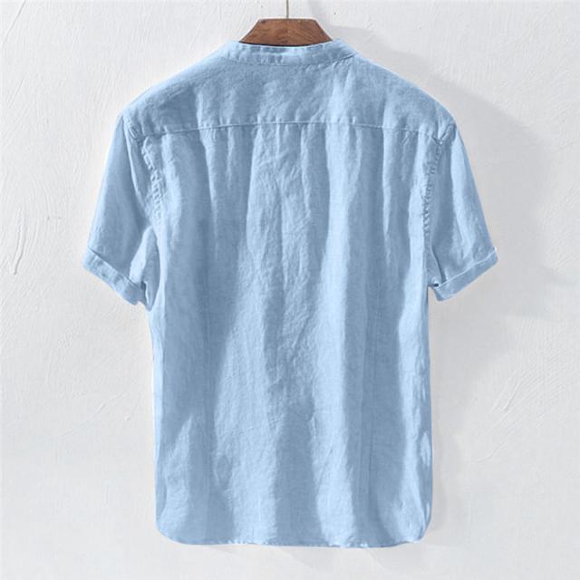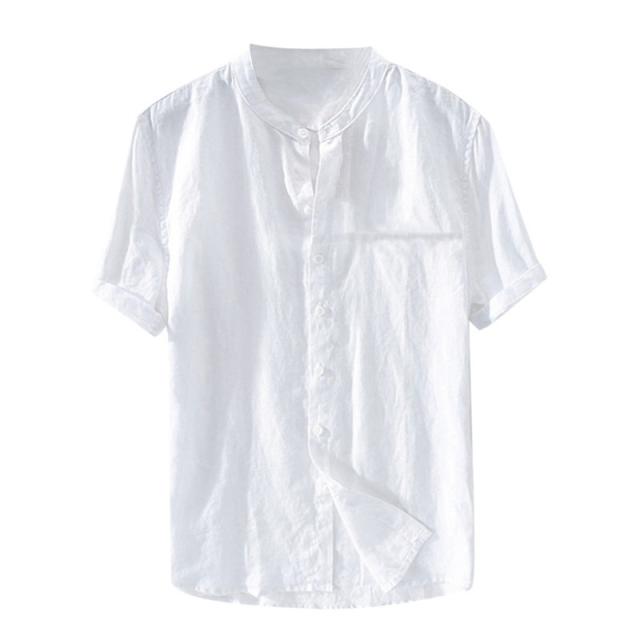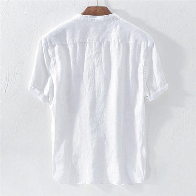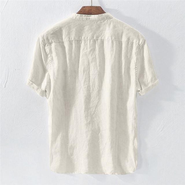 リネンTシャツ メンズ 半袖tシャツ Tシャツ 綿麻 無地 夏物 リネン ボタン付き 5分袖 トップス カットソー メンズファッション クルーネック