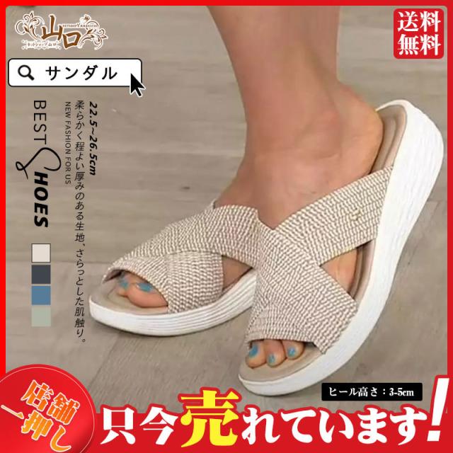 サンダル レディース 布素材 ぺたんこ 歩きやすい ウェッジソール 美脚 シューズ スリッパ 滑り止め 疲れない 走れる