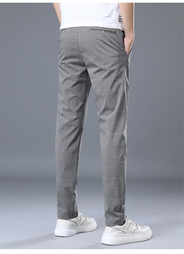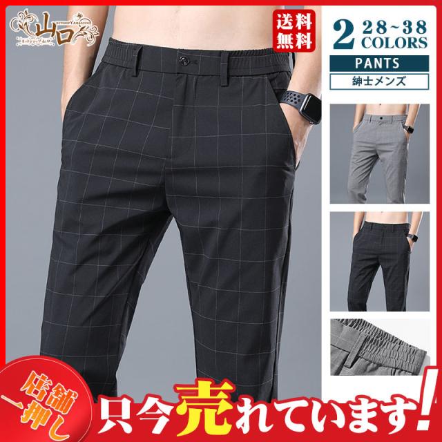 メンズ ズボン スラックス パンツ クールビズ ビジネスパンツ チェック柄 紳士 大きいサイズ シンプル 春夏物 洗える 細身 美脚 送料無料