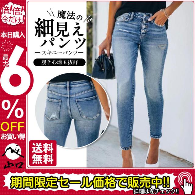 スキニーパンツ レディース デニム 細身 ジーンズ ストレッチ 大きいサイズ 10分丈 ジーパン 美脚 ボトムス スリム 伸びる 無地 送料無料