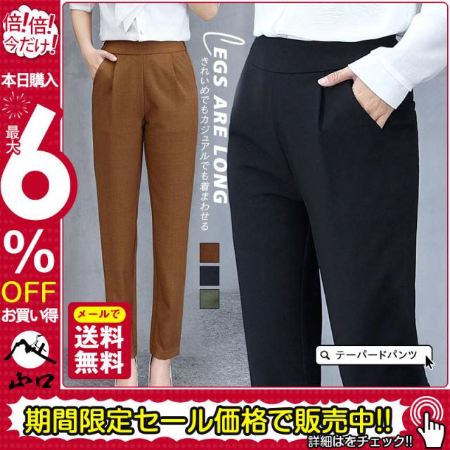 テーパードパンツ パンツ レディース ボトムス ハイウエスト 九分丈 ウエストゴム 体型カバー 楽ちん 伸びる 安い 伸縮性あり ズボン 送料無料